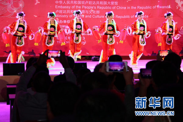 2月9日,卢旺达基加利,中国艺术团在“欢乐春节”演出中表演舞蹈《红灯笼》。新华网发(吕天然摄)