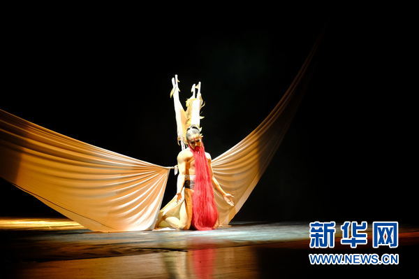 2月9日,北京现代舞团在摩洛哥首都拉巴特上演舞剧《三更雨·愿》。新华网记者陈斌杰 摄