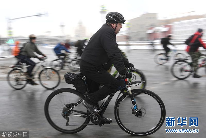 莫斯科民众参加冬季自行车骑行活动
