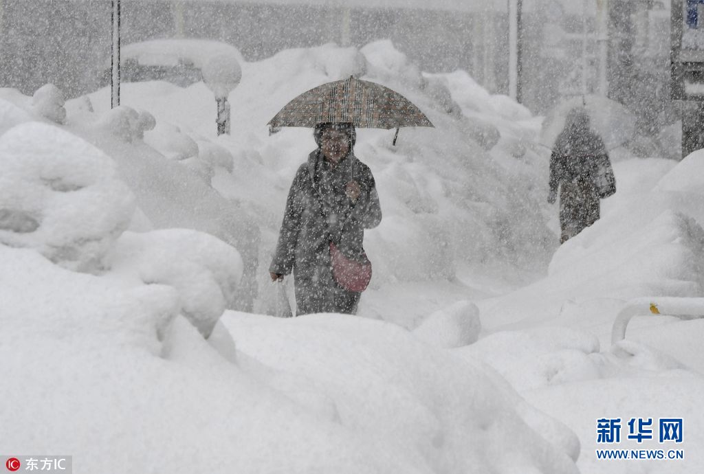 日本福井县遭暴雪袭击 积雪堆积半人高