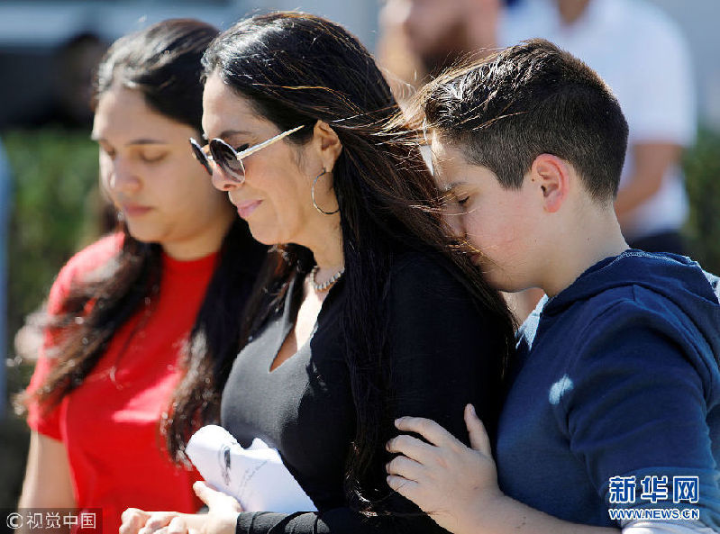 当地时间2018年2月15日,美国佛罗里达州波姆庞帕诺滩,民众悼念枪击案遇难者。当地时间14日下午2点25分左右,美国佛罗里达州南部帕克兰一所高中发生枪击案,目前已致至少17人死亡,多人受伤。(图片来源:视觉中国)