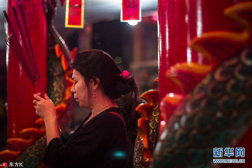当地时间2018年2月15日,印尼雅加达,当地华人庆祝中国农历新年,上寺庙烧香祈福。(图片来源: 东方IC)