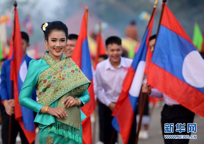 上拍摄的身着传统服装的老挝女孩。