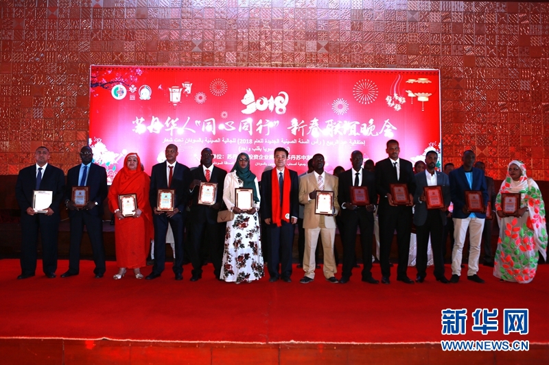 中国石油尼罗河公司总经理刘英才与苏丹杰出雇员和优秀雇员代表合影。新华网发