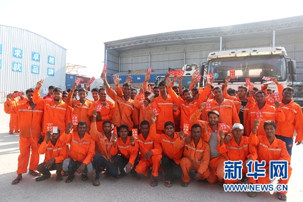 大年初一,项目领导班子给全体参建人员发红包。新华网发