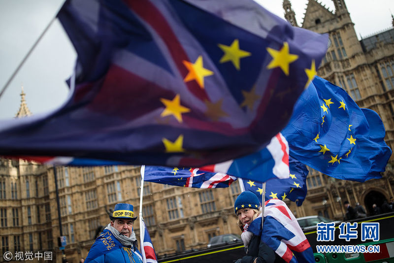 2月26日,英国伦敦,示威者在议会大厦外抗议“脱欧”。(图片来源:视觉中国)