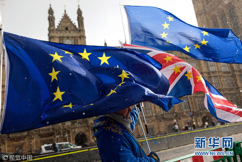 2月26日,英国伦敦,示威者在议会大厦外抗议“脱欧”。(图片来源:视觉中国)