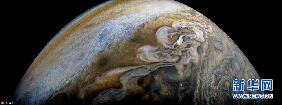 NASA公布木星南极美图 蓝色漩涡壮丽夺目