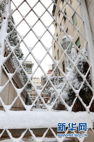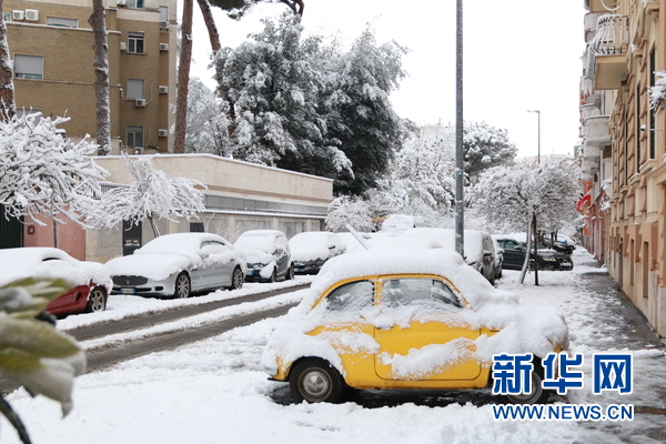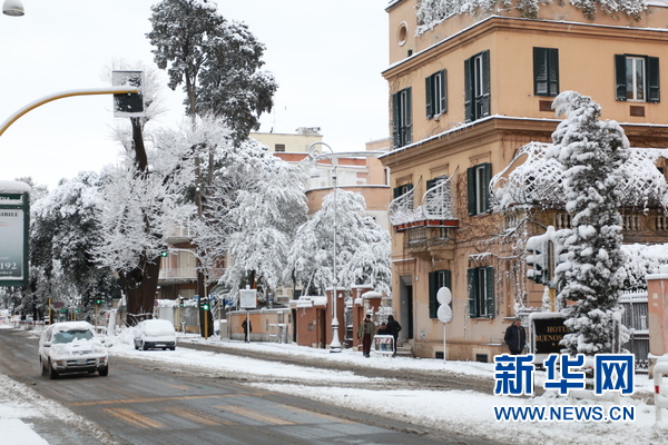 2月26日大雪后的罗马街景。新华网发 黄万晴摄