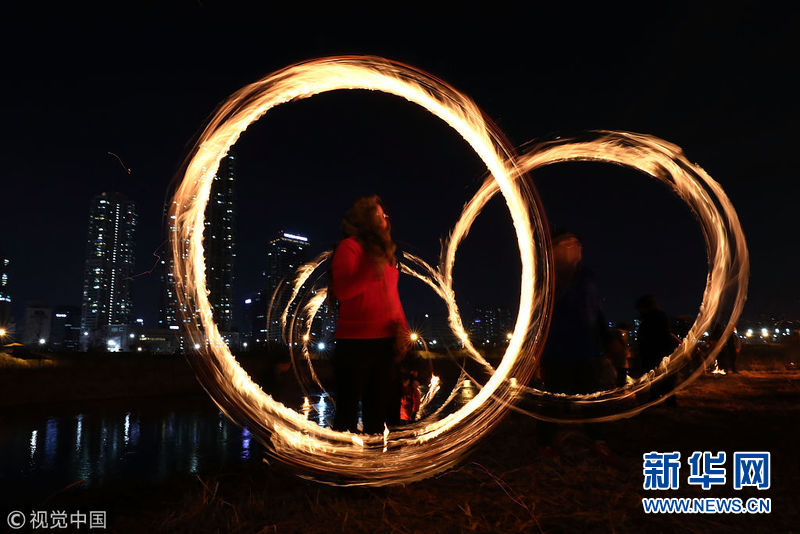 韩国首尔举行野火节庆祝活动 点燃篝火祈丰收