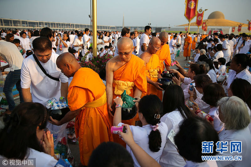 泰国庆祝万佛节 佛教僧侣参加“布施”仪式场面壮观