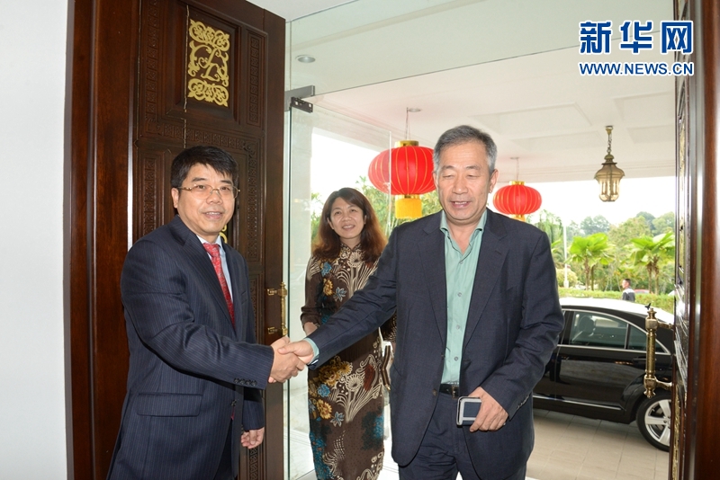 韩国驻文莱大使曹源明(右)1日前来参加中国驻文莱使馆的“开门迎宾”活动。新华网发(杰弗里·黄摄)