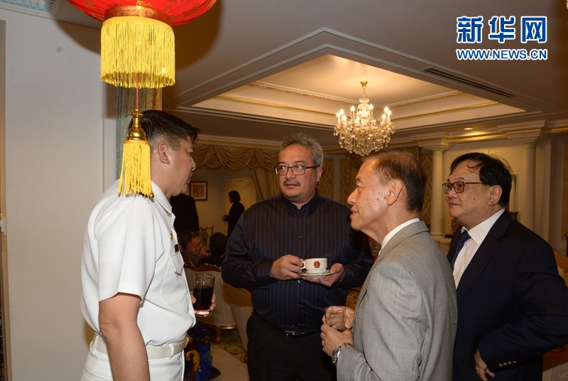 参加中国驻文莱使馆的“开门迎宾”活动的嘉宾亲切交谈,分享中国新年欢乐。新华网发(杰弗里·黄摄)