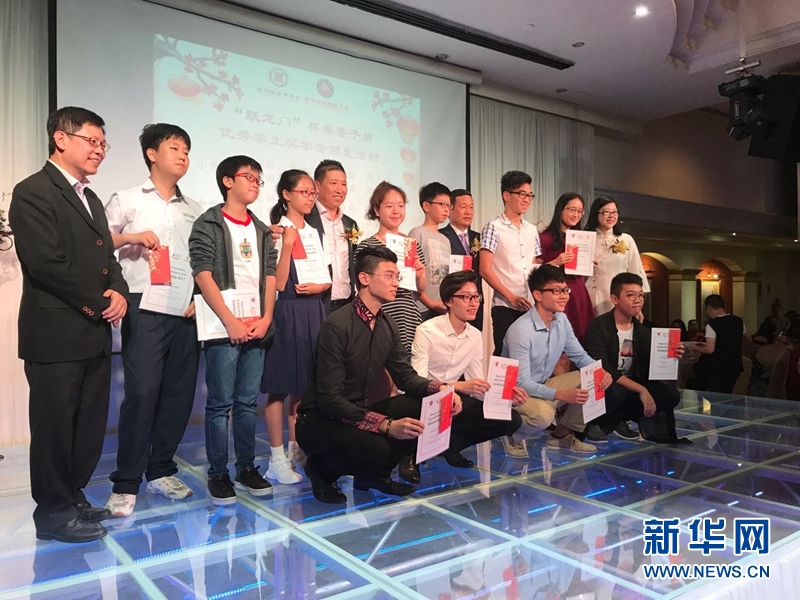 两社团向秦晋两地优秀中学生颁发奖学金。新华网记者王丽丽 摄
