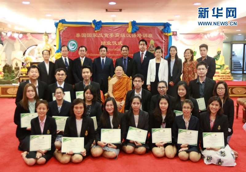 新华网曼谷3月7日电(记者汪瑾 李欣莹)由海上丝路孔子学院主办的泰国国家反贪委进阶汉语培训班5日下午在岱密寺举办了结业仪式。泰国国家反贪委秘书长沃拉维特·萨比特乐和副秘书长巴亚·蒲占巴出席了结业典礼,海上丝路孔子学院泰方理事会主席赵昆通猜亲自为学员颁发结业证书。