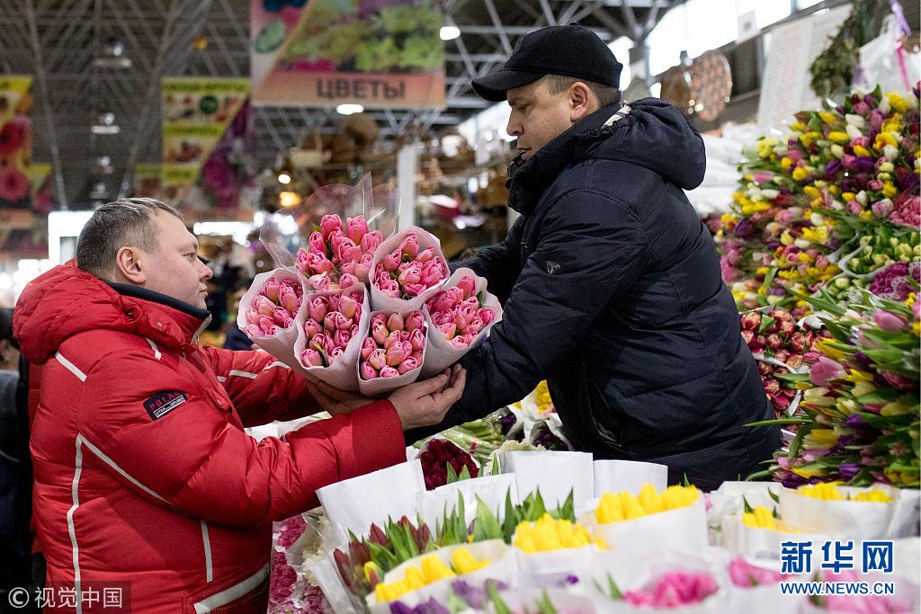 迎“三八”国际妇女节 俄花卉市场现销售热潮