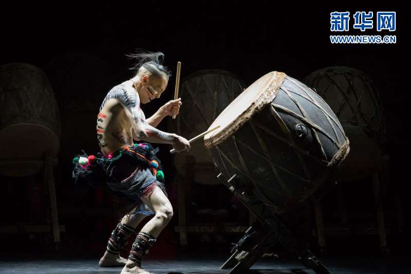 哈尼族演员虾嘎演奏老虎鼓。新华网发