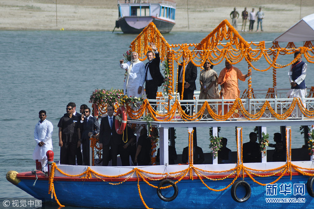 法国总统马克龙访问印度 莫迪陪同游览