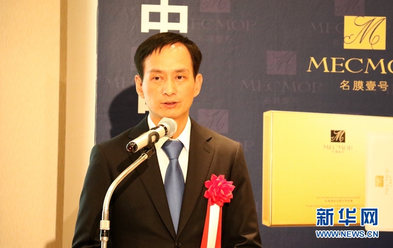 广州无添加主义化妆品有限公司董事长喻君在发布会上介绍该品牌理念。新华网记者彭纯 摄