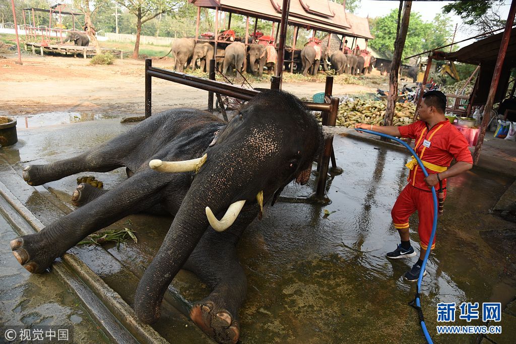 当地时间2018年3月13日,泰国大城府举办“泰国大象日”庆祝活动,主角大象在训导员的带领下畅享水果大餐。据报道,每年3月13日是泰国大象日,节日旨在倡导保护大象。泰国野生大象数量急剧下滑,目前野生大象的数量还不到3000头。(图片来源:视觉中国)