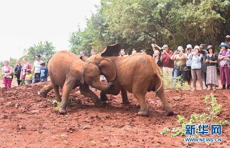 3月6日,游客在大象孤儿院参观。