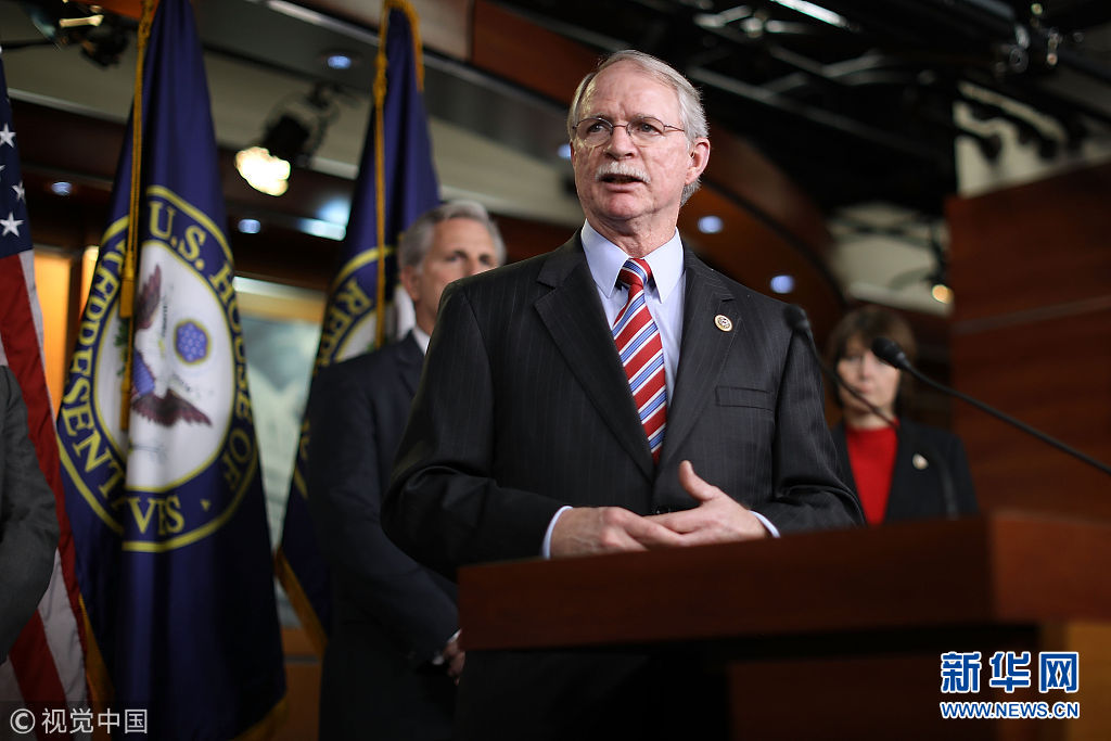 3月14日,美国华盛顿,美国众议员代表出席新闻发布会。美国众议院14日以高票通过一项预防校园暴力的法案,但是并未涉及控枪问题。(图片来源:视觉中国)