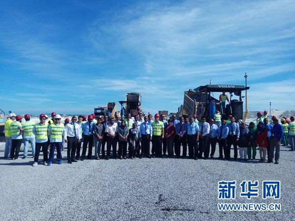 马尔代夫维拉纳国际机场新跑道沥青摊铺。新华网发