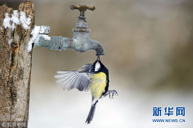 2018年3月15日讯(具体拍摄时间不详),英国斯诺登尼亚,前两天当地下了很大的雪,摄影师Jonathan Need专门在外面投食喂鸟,鸟儿总是在花园旧的水龙头上栖息,所以Jonathan Need在花园的水龙头口处放置了一些花生,看看会发生怎样的情景,令人惊喜的是,面对美食,山雀展示出惊人的“飞行技能”。(图片来源:视觉中国)