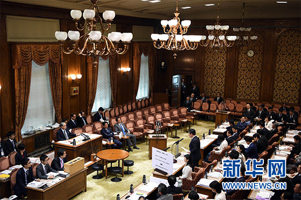 3月19日,在日本东京,日本参议院预算委员会集中审议财务省篡改森友学园“地价门”相关审批文件一事,在野党向财务省及首相安倍晋三追责,要求安倍内阁辞职。新华社记者 马平 摄