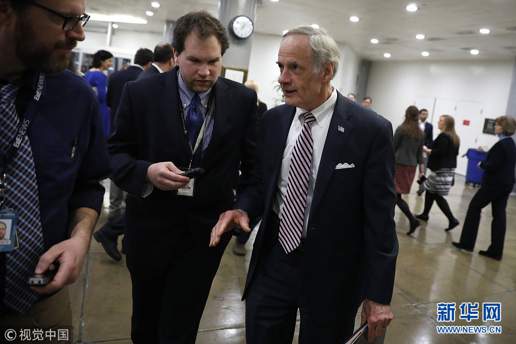 3月20日,美国华盛顿,美国参议院召开每周午餐会。据美国《世界日报》19日报道,美国共和民主两党关于1.3万亿美元预算案的协商19日进入关键阶段,但对于白宫表态愿意延长梦想生缓遣计划,但须以拨款250亿美元兴筑边界高墙作为交换条件,民主党国会议员迄今仍然拒绝。至23日午夜,参众两院若未能通过预算案,政府将再度面临关门。(图片来源:视觉中国)