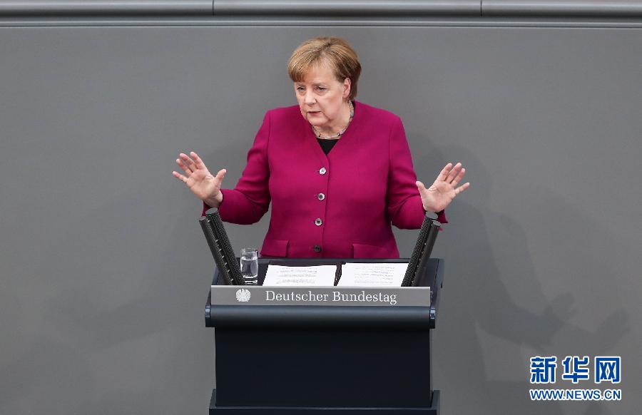 3月21日,在德国柏林,德国总理默克尔在联邦议院发表德国新政府成立后的第一个政府声明。新华社记者单宇琦摄