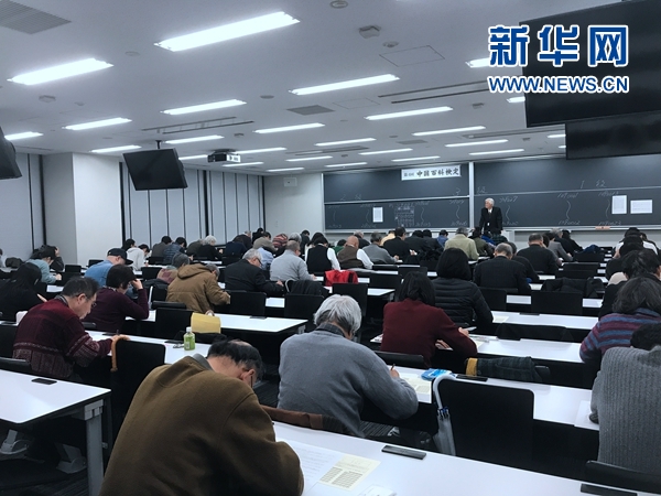 80余应试者在日本东京明治大学中野校区考场参加第4届“中国百科检定”考试。新华网记者王可佳 摄