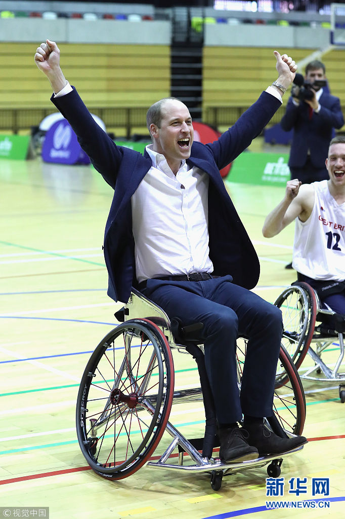 当地时间2018年3月22日,伦敦,英国王室成员威廉王子探访残疾人轮椅篮球运动员。 (图片来源:视觉中国)