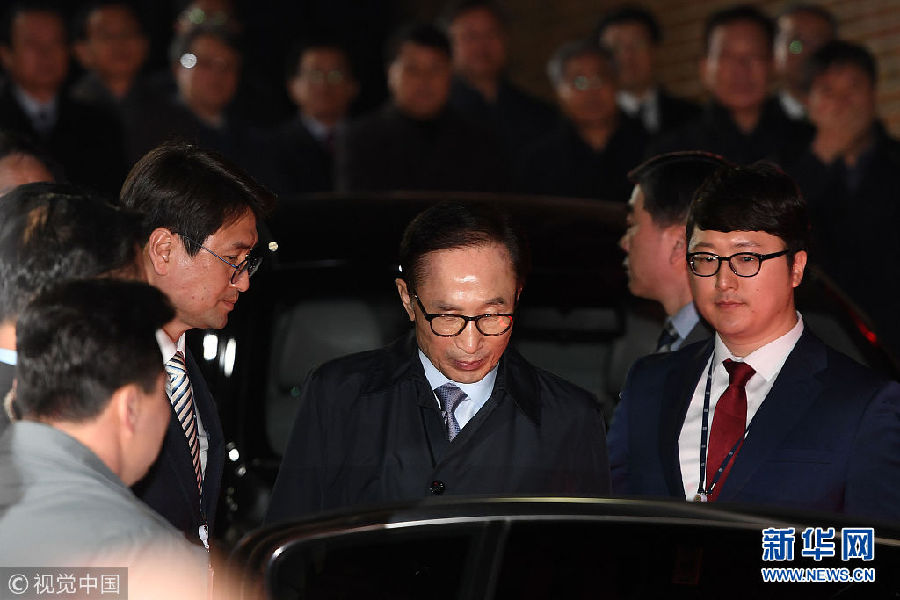 韩国首尔中央地方法院22日晚对前总统李明博签发逮捕令。(图片来源:视觉中国)