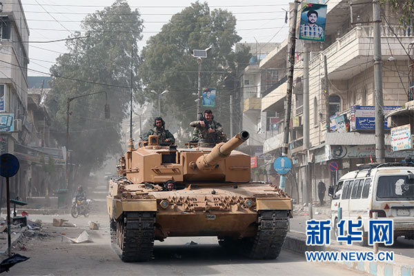3月24日,在叙利亚阿夫林,一辆土耳其坦克在城区驶过。新华社发