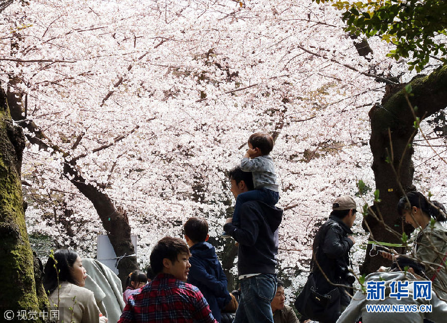 当地时间2018年3月24日,日本东京,上野公园樱花绽放,大批游人前来赏樱。(图片来源:视觉中国)