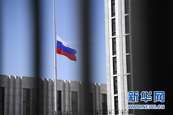 这是3月26日在美国首都华盛顿拍摄的俄罗斯驻美国大使馆内的俄罗斯国旗。新华社记者杨承霖摄