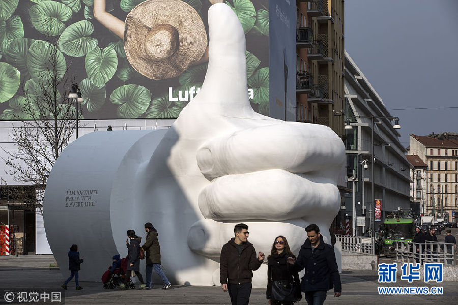 画风清奇!意大利米兰地标建筑旁现“点赞”大拇指