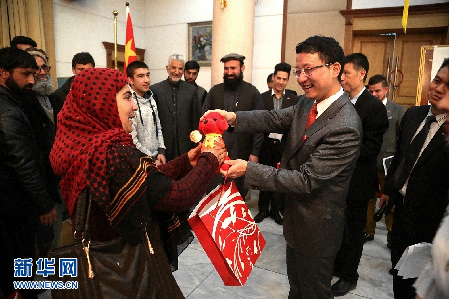 参加当天活动的还有中国驻阿富汗参赞张志新、领事部主任何明等外交官,喀布尔省前议会主席拉赫曼、省教育局代表拉夫利、中阿友谊学校校长马力克及师生代表等约40人。