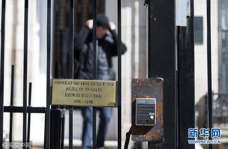 当地时间2018年3月26日,加拿大蒙特利尔,一名男子走出俄罗斯驻加拿大领事馆。加拿大外交部长弗里兰26日发表声明,宣布驱逐4名俄罗斯外交官。她表示,加拿大此举是对英国就俄罗斯前特工斯克里帕尔及其女儿“中毒”案采取的行动的支持。(图片来源:视觉中国)
