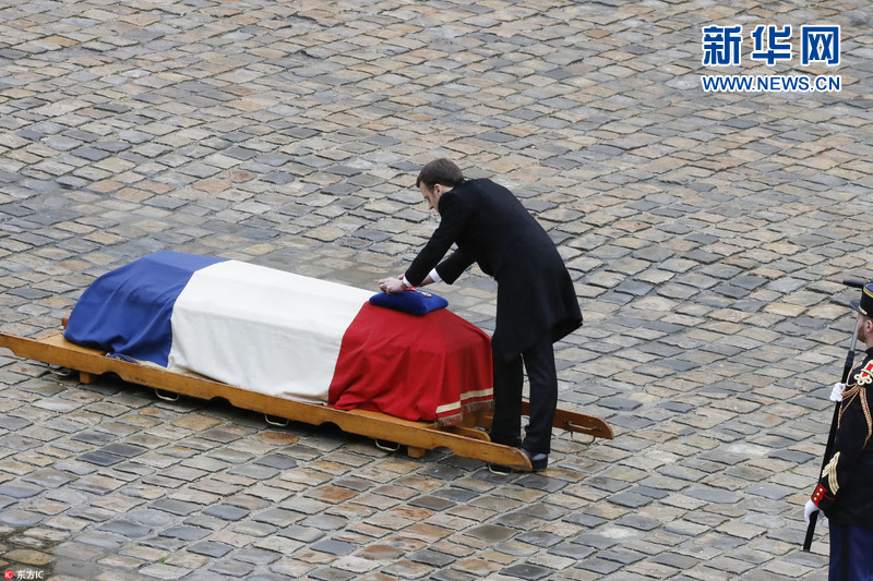 法国为英雄警察举行国葬 马克龙偕妻子出席神情严肃