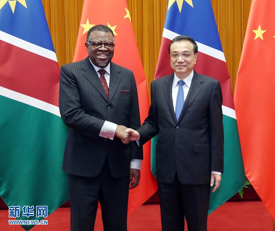 李克强表示,纳米比亚是中国在非洲的重要合作伙伴。昨天,习近平主席同你举行了富有成果的会谈,将两国关系提升为全面战略合作伙伴关系。中方愿同纳方巩固政治互信,深化互利合作,加强在国际地区事务中的沟通协调,开辟两国关系更加美好的未来。