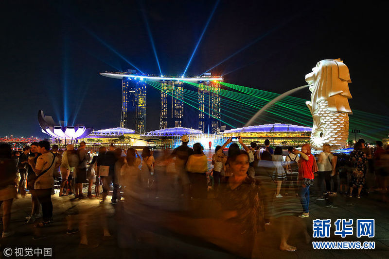 新加坡滨海湾举行灯光秀 炫彩夺目