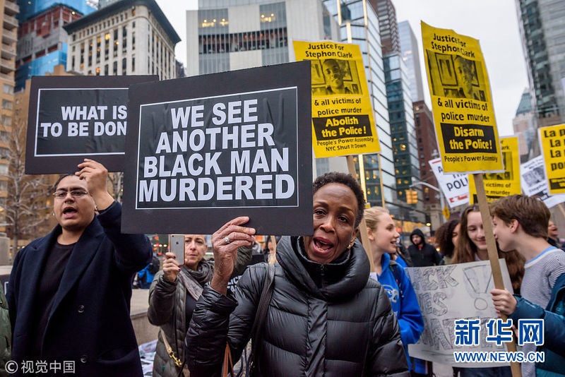 美国纽约举行百人大游行 抗议加州警方枪杀手无寸铁黑人男子