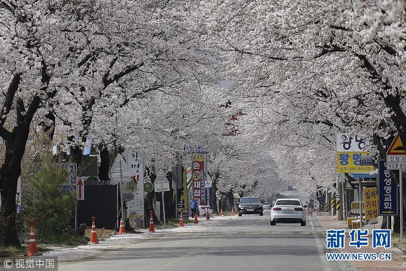3月30日,韩国河东郡,当地樱花盛开,吸引游人观赏。(图片来源:视觉中国)
