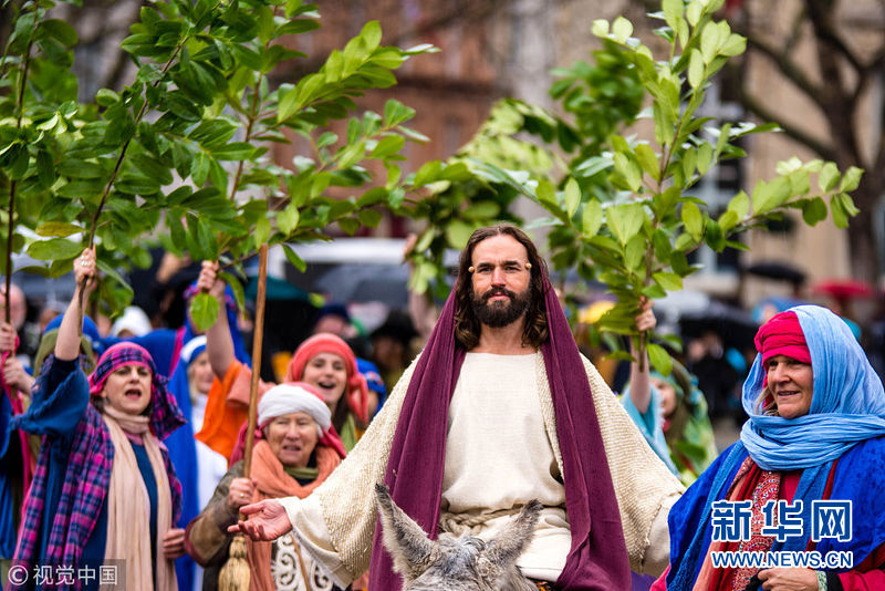 3月30日,英国伦敦,当地民众表演耶稣受难记,迎接复活节的到来。(图片来源:视觉中国)