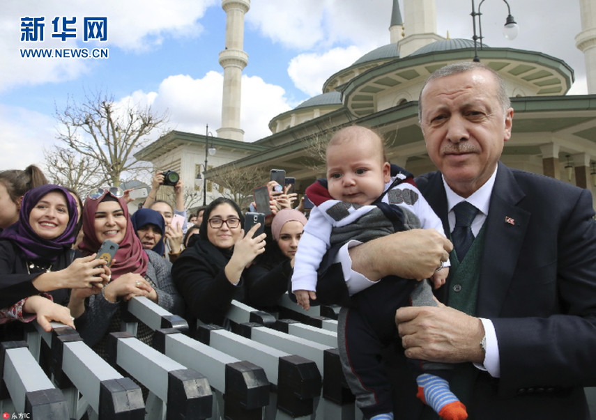 土总统埃尔多安会见支持者 抱小萌娃与民众打招呼