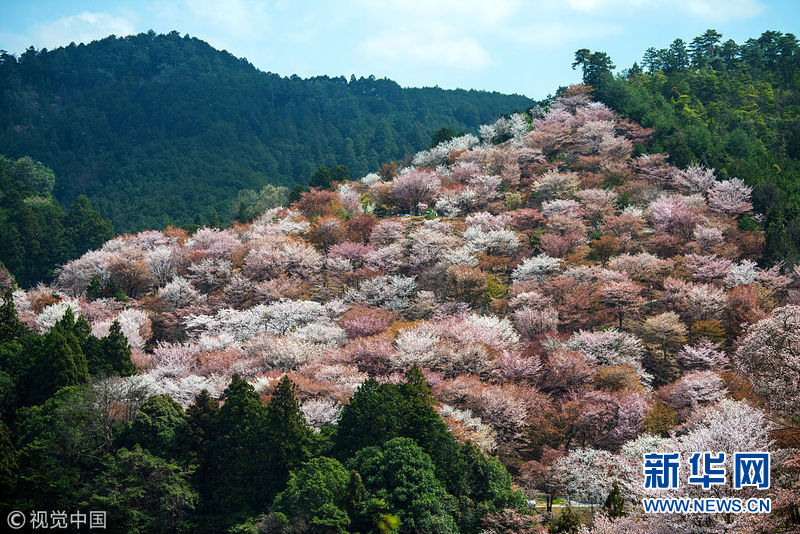 4月3日,日本奈良吉野,当地樱花盛放,吸引众多游客前来观赏。(图片来源:视觉中国)