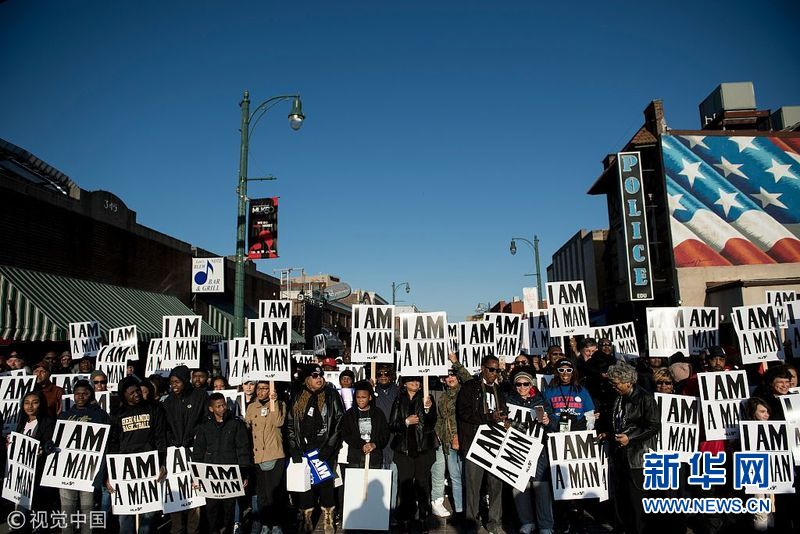 4月4日,美国田纳西州孟菲斯,民众参加游行,纪念马丁·路德·金遇刺50周年。(图片来源:视觉中国)