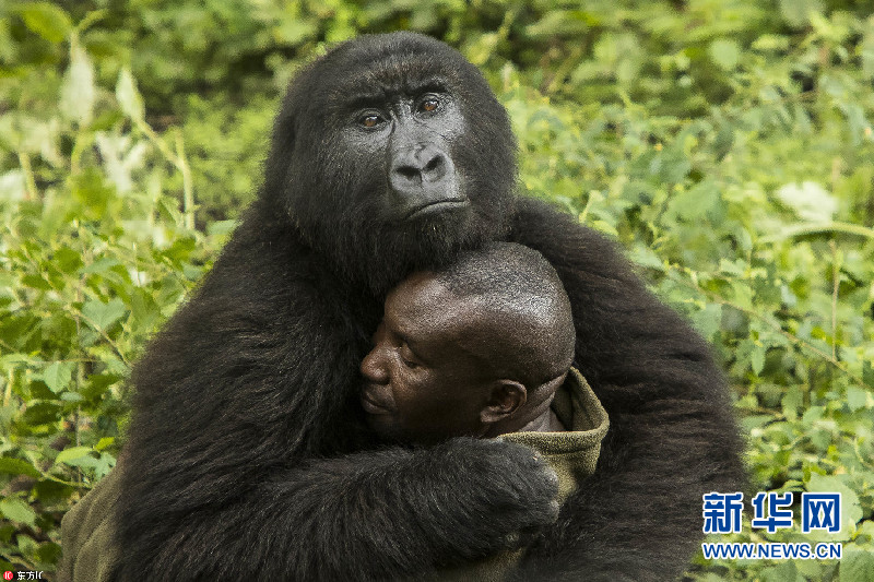 刚果大猩猩摄把饲养员揽进怀里熊抱,摄影师James Gifford用镜头记录下了这暖心的一幕。图片来源:东方IC